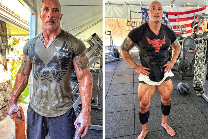 A Szikla nem titkolja, milyen keményen dolgozik azért, hogy fenntartsa akciósztár fizikumát. Gyakran oszt meg posztokat a közösségi médiában. Dwayne Johnson osztott edzést végez. Különböző napokon különböző izomcsoportokon dolgozik.
