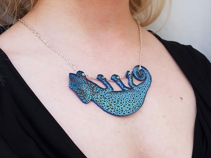 11. „Készítettem egy kaméleon nyakláncot, ami a láncán lóg.”