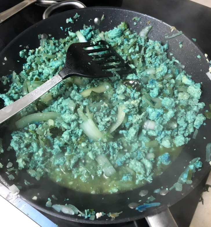 3. „Thai bazsalikomos csirkét csináltam, aztán megfordultam egy percre, és a bátyám kék ételfestéket tett bele. Ő 19 éves.”